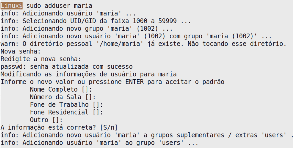 - Exemplo da criação do usuário “maria”